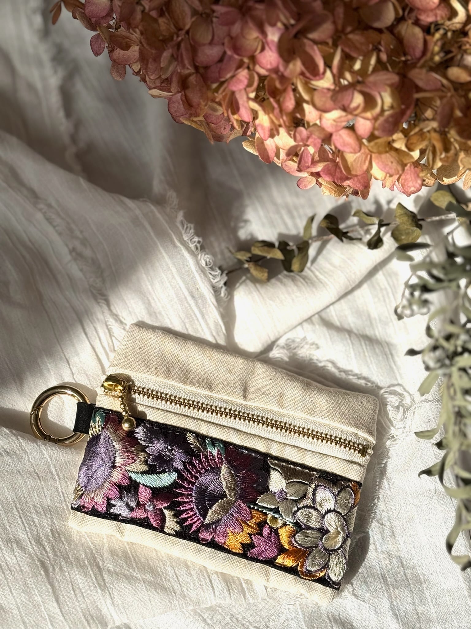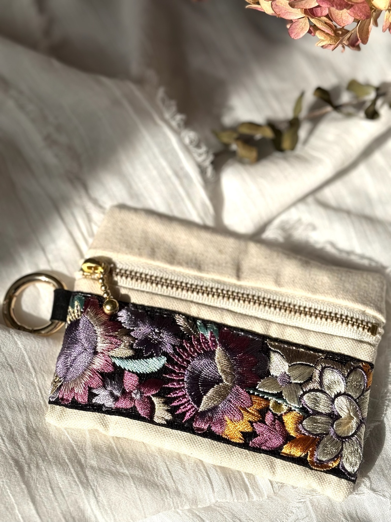 ◆繊細で華やかなインド刺繍リボンのミニポーチ◆